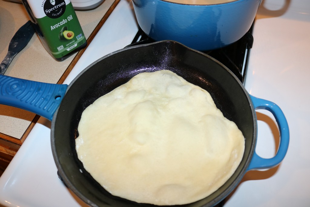 Cover bowl with damp towel and let rest for 10 minutes. Cut dough into about 8 balls to make them thicker or 12 to make them thinner. Roll out balls onto floured counter 8 inch circles or use a tortilla press! They don’t have to be perfect. A tortilla press will really save you time. Heat skillet over medium high heat, drizzle avocado oil in pan and using a brush, drizzle on tortillas as you go. Cook 30-60 seconds until bubbles form and slightly golden. Flip for another 30 seconds.
