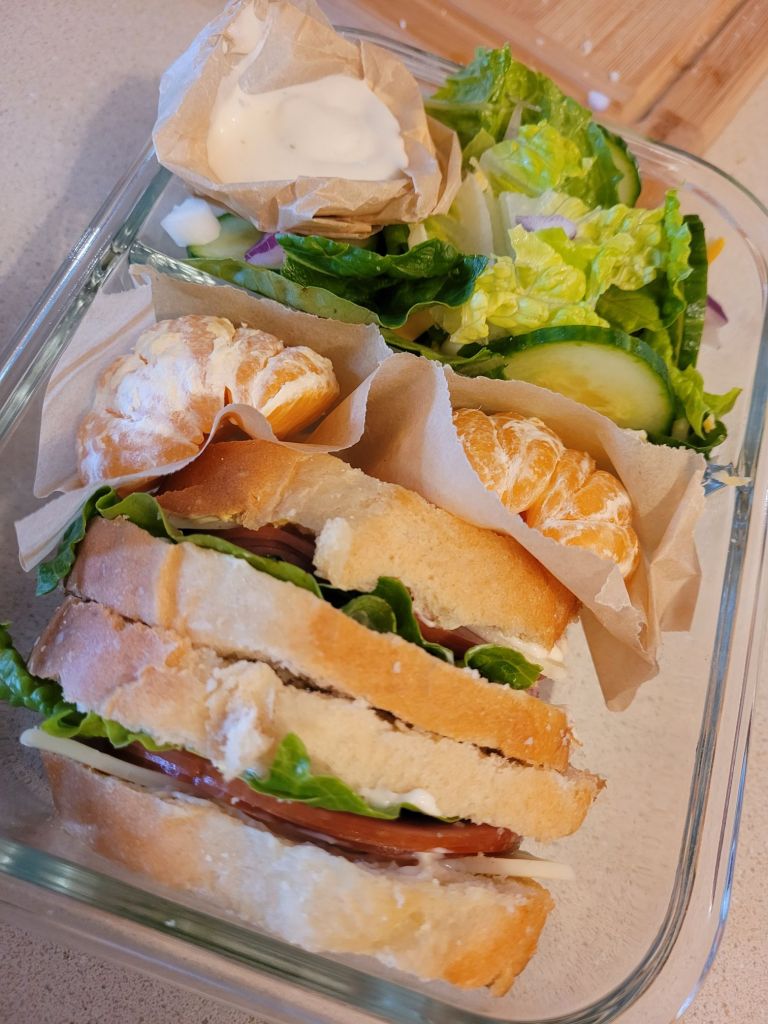 I love these food containers shown above! Link here https://amzn.to/3XvMdot. They fit perfect in a lunch box and are just the right size for a good lunch. Just make sure you’re not using plastic containers! Glass is the best. I like to add healthy chips (Cape Cod Kettle Cooked Potato Chips) and maybe a homemade cookie for my husband.